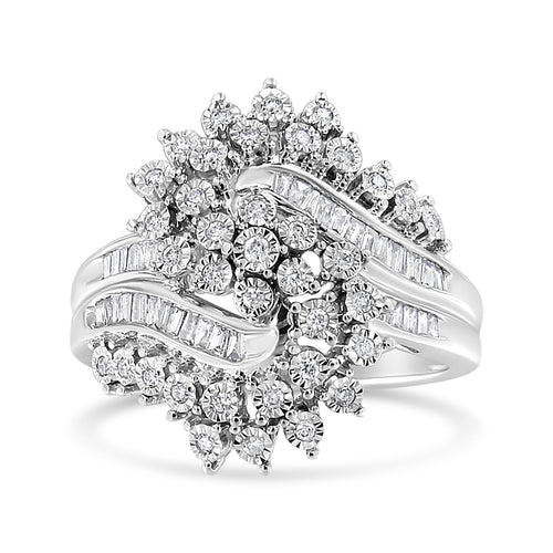 3W264 - Rhodium Brass Ring with Top Grade Crystal in Clear -